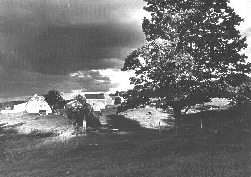 The 1954 barn with addition, nearest to camera, to store manure during December I - April 1 period when government regulations forbid spreading it.