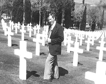 David Hardy visits brother Vinal's grave in Florence Italy Cemetery. David served with the Army of Occupation in Japan 1946-48 271st. Field Artillery