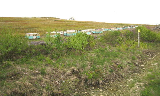 activity by the bees. One of the blueberry fields is in the background.