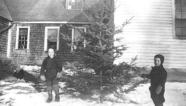 Eddie and Wilbur ca. 1941, first Christmas tree